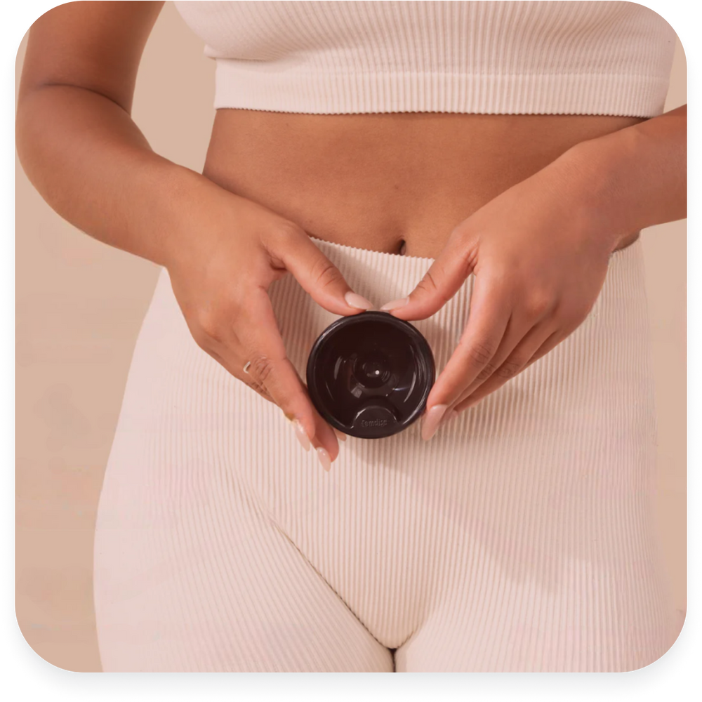 Die Bewegung des Scheidenausgangs beim Entleeren der Blase löst die Bewegung der Menstruationsscheibe aus. Diese Muskeln sind isoliert und werden nur für die Toilettenbenutzung freigegeben. Da diese Muskeln beim Kniebeugen, Sport, Husten und Lachen nicht freigegeben werden, bleibt deine femdisc an Ort und Stelle.